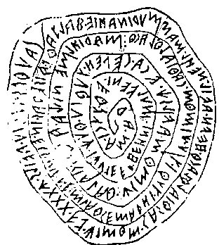 Disc with lettering within spiral2 Physical Script Object: Golden ring from Mavro Spelio hypothesis shape